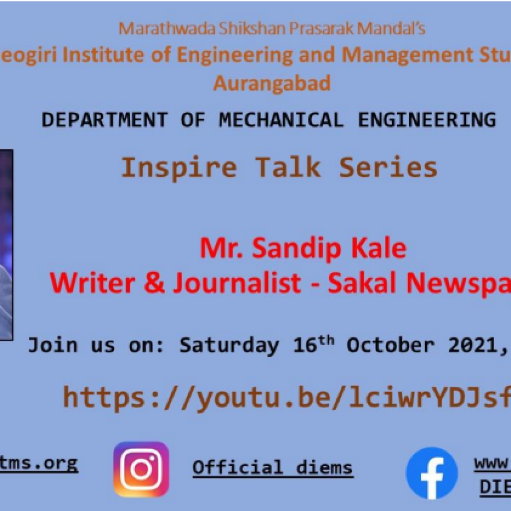 INSPIRE Talk Series is one of the ways DIEMS undertake to motivate our students to take the different paths of career like entrepreneurship, civil services, armed forces, social work, environmental awareness, industrial relations, literature, journalism, corporate management, and research for societal benefits.