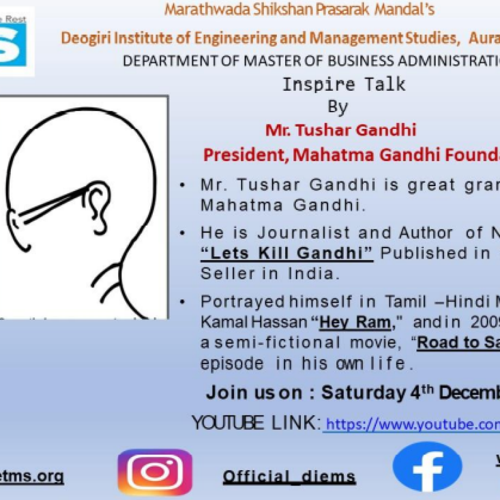 In the Academic Year 2021-22 personalities like Shri. Raman Gangakhedkar, Dr Tatyarao Lahane, Shri. Atchut Godbole, Shri Madhavrao Chitale, Shri Tushar Gandhi, Dr. Medha Tadpatrikar, G. Shrikanth (I.A.S), Shri.Ram Marlapalle, Shri. Sandeep Kaley, Dr. Bhooshan Kelkar, and many others have shared their life journey in this INSPIRE series.